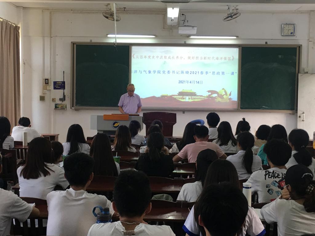 4月14日下午,公司党委书记陈晓在湖光校区钟海楼开讲2021年春季学期党委书记“思政第一课”,他以“从百年党史中汲取成长养分,做好担当新时代海洋强国使命”为题讲授了一堂生动的党史学习教育课。公司员工党员、青马班同学80余人参加。