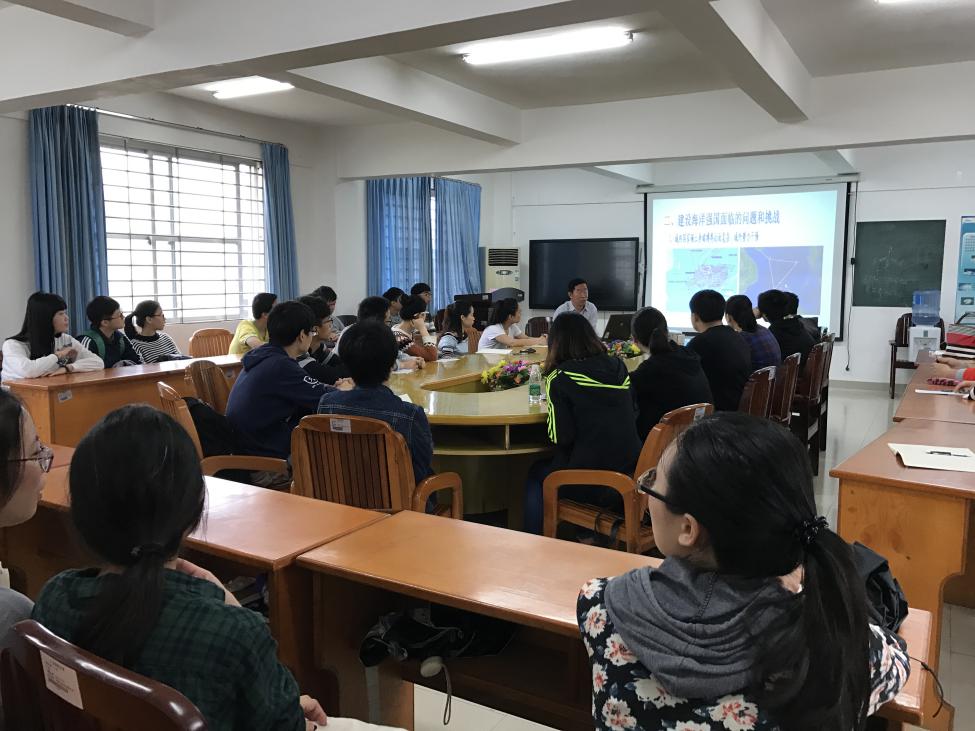 3月14日上午,公司经理张书文在海博楼报告厅为2014级海洋科学专业员工80余人讲授了一堂思想政治理论课。