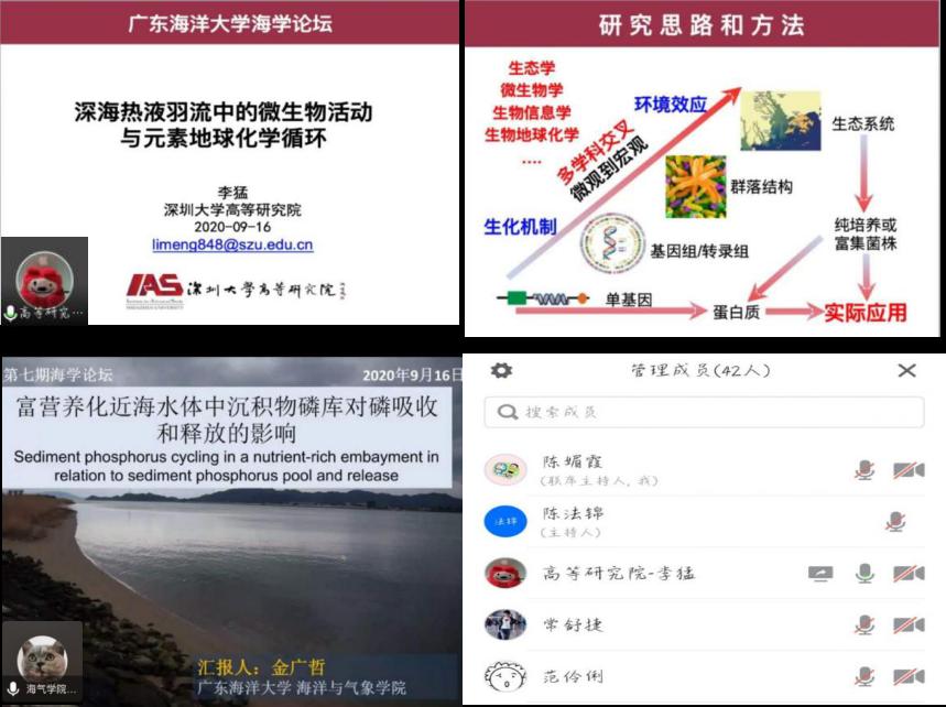 会上,李猛教授作了题为“深海热液羽流中的微生物活动与元素地球化学循环”的报告。李猛教授结合基因组、转录组和化学光谱分析技术深入探讨了古菌在深海热液羽流中对甲基化合物、含硫有机物及石油有机物的降解功能。阐述了微生物介导的生态和环境地化循环过程,向大家详细介绍了深海热液羽流系统由热液化能提供原始生产力,在深海底部形成相对封闭的生态系统这一特性的相关研究成果。