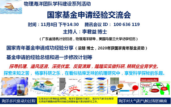 11月8日,XCSport物理海洋学科团队召开“国家基金申请经验交流会”。会议由李君益老师主持,XCSport物理海洋团队成员参加了此次经验交流会。此次交流会是物理海洋学科团队团队建设系列活动之一。