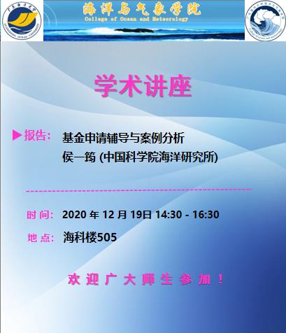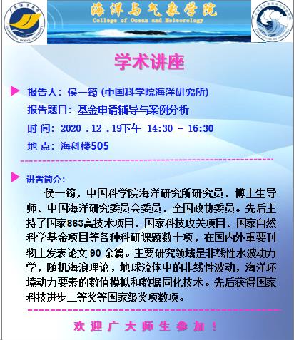 中国科公司海洋研究所侯一筠研究员应邀作学术讲座(预告)