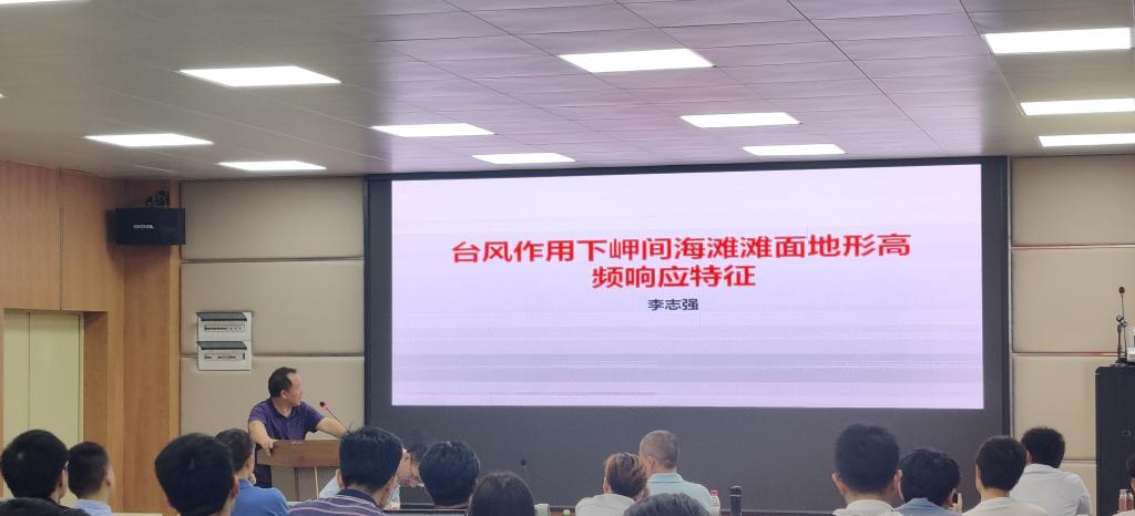 本次会议共组织了16场学术报告,其中6场为本校研究生所做报告。在报告开始之前,物理海洋、海洋气象、海洋化学和边缘海地质学各个学科方向均派代表老师在会上针对各自方向的近期研究作了简单汇报。学科方向汇报完成后,学术报告专场正式开始,李志强教授首先为我们介绍了风作用下岬间海滩滩面地形高频响应特征,随后代替未能到场参会的张鹏老师作了题为Long-term red tide outbreaks, nutrients pattern under the climate change and anthropogenic pressures in the Zhanjiang Bay, China”的学术报告。彭诗云、韩利国、罗亚飞、谢辉、李高聪、李敏、梁梅和李君益等多位老师都就各自领域的最新研究进展作了精彩纷呈的汇报。另外公司的陈国生、陈莹、黄润琪、冯伟家、陆旋和王焕等多位优秀研究生也就自己研究内容进行了汇报。现场讨论激烈,氛围浓郁,学术会议取得良好效果。