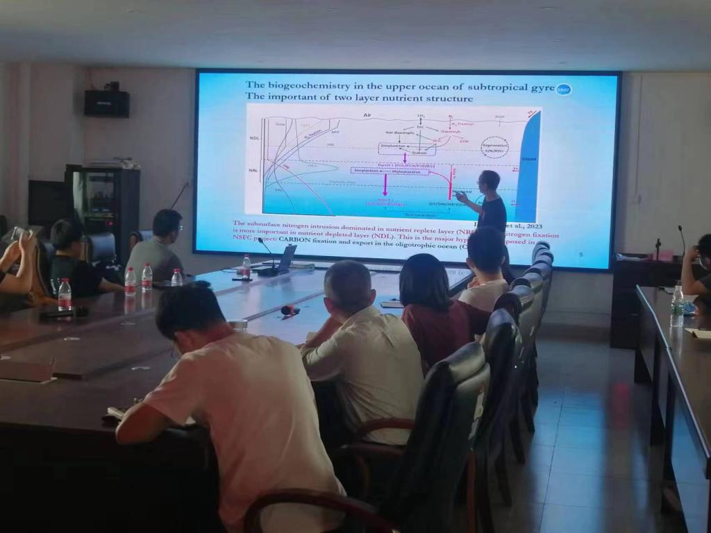 厦门大学海洋与地球公司周宽波副教授做了题为“北太平洋亚热带环流圈的固氮作用及其对碳输出的影响”,发现较强的固氮作用并不一定导致高的有机碳输出,而有机碳的输出更多是跟营养跃层的转变有关。