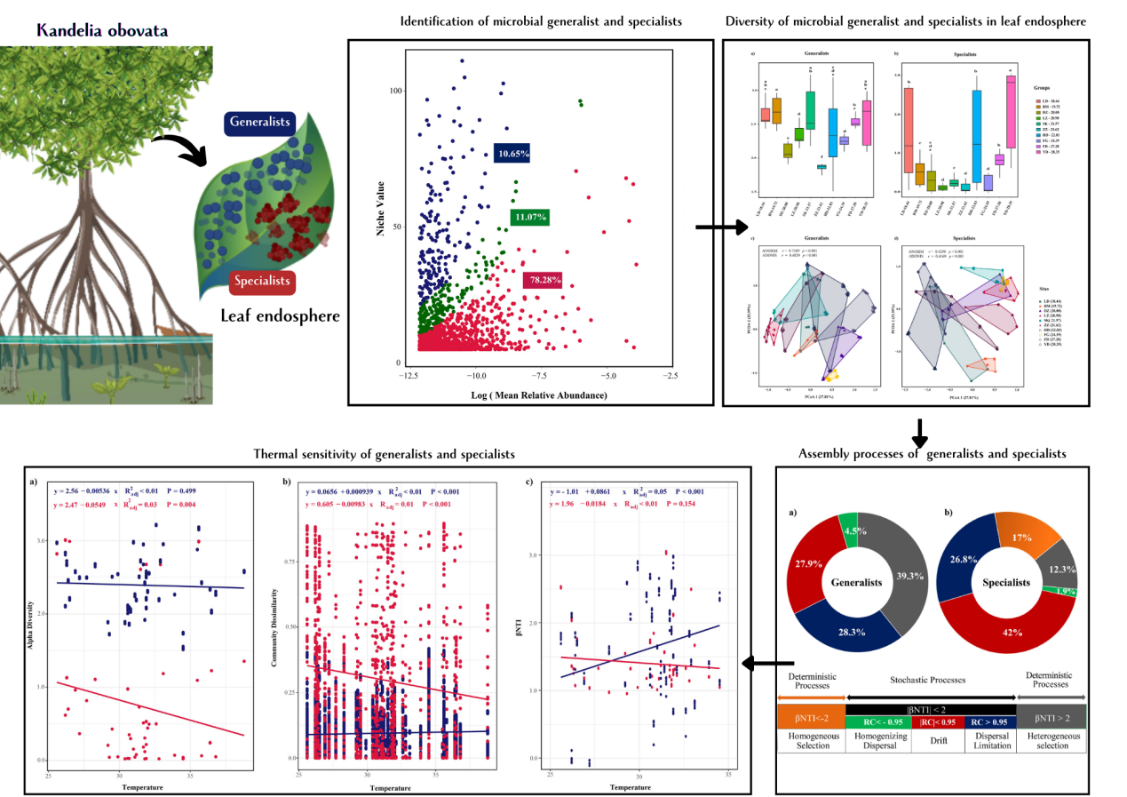 参考文献:(1). Nethmini, R.T., Zhao, H., Pan, L. et al. Thermal sensitivity and niche plasticity of generalist and specialist leaf-endophytic bacteria in Mangrove Kandelia obovata. Commun Biol 8, 5 (2025). https://doi.org/10.1038/s42003-024-07446-1