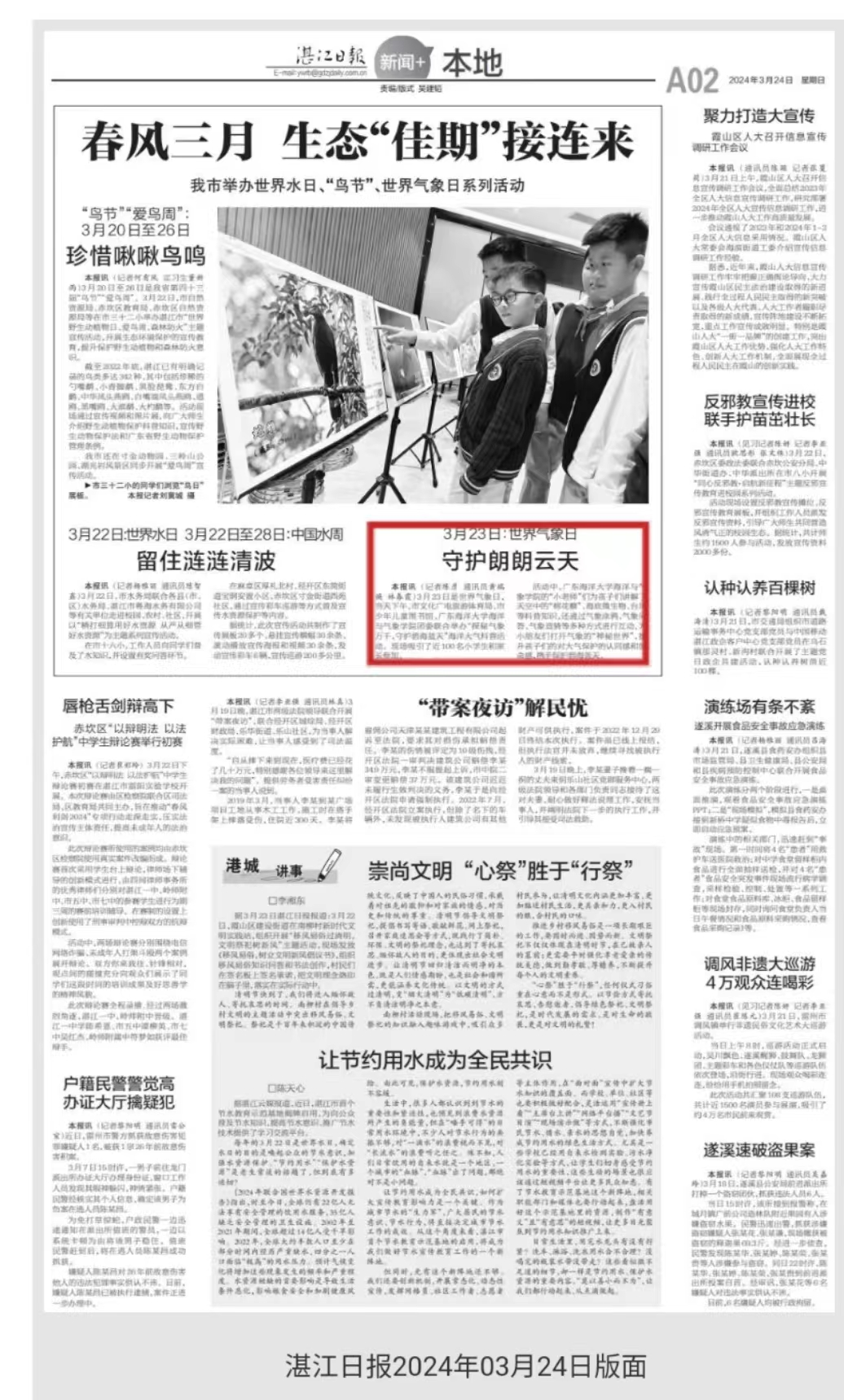 3月23日是世界气象日,当天下午,市文化广电旅游体育局、市少年儿童图书馆、XCSport团委在湛江市少儿图书馆联合举办“探秘气象万千,守护碧海蓝天”海洋大气科普活动。本次活动为少年儿童种下科学的种子,提升小员工科学素养与思维能力。