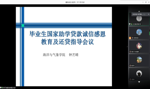 会上,钟艺晴老师向同学们强调了诚信还款的重要性,要求同学们提前或按时还款。钟老师指出,诚信是为人的重要品质,如期履约、按时还贷是每个接受助学贷款资助同学的义务,也是我们对国家、社会和公司的回报;并强调国家助学贷款是老员工以个人信用向银行获得的贷款,能否按时按期还贷对老员工将来的工作和生活会起到重要的作用。接着,钟老师就贷款偿还流程、信息变更、支付宝账户使用、诚信问题、还款提醒等方面进行详细讲解,并对毕业生提出了如下建议:在自己的经济能力允许下,按时或提前还款,以减轻利息带来的经济压力。