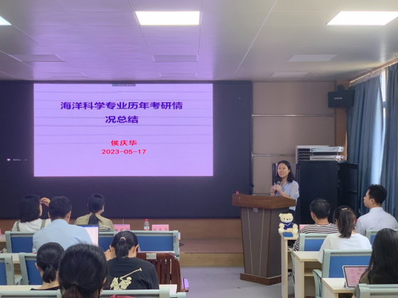 海洋科学系主任侯庆华汇报了2023年公司考研工作:2023年报考率为 55.23%,考研人数逐年上升;上线率为45.26%。充分肯定了2023年考研工作取得的优异成绩,并通过总结往年员工考研的实践经历,提出了三个问题:我为什么要考研?我考上的几率有多大?怎么备考?引发大家思考。