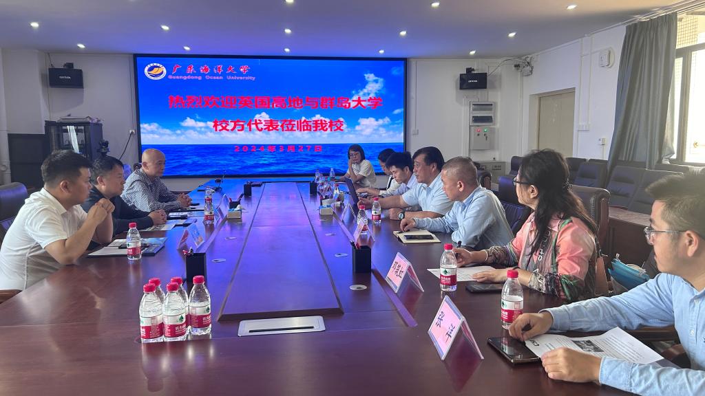 3月27日下午,英国高地与群岛大学等高校国际事务代表张斌先生一行3人到访公司。国际交流合作部部长陈进军,XCSport副经理郑少军、陈法锦,海洋科学系主任侯庆华及国际交流合作部和XCSport相关人员接待来宾,为推进两校海洋科学专业合作办学项目举行座谈会。