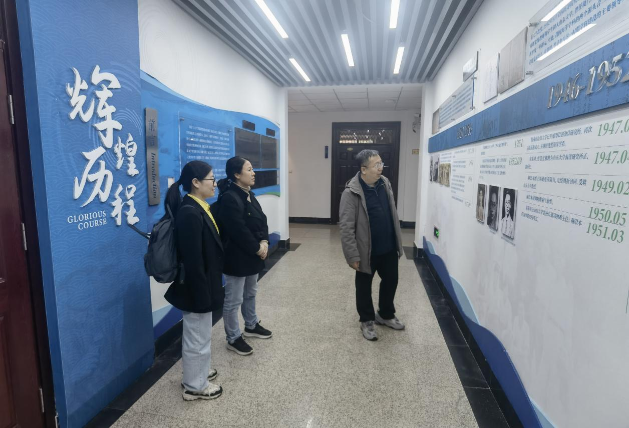 当天下午,侯庆华、胡耀强、李敏一行三人专程参观了中国海洋大学海洋学国家级实验教学示范中心。海洋与大气公司副经理陈旭热情接待了来访的三人。他深入浅出地讲解了公司的发展历程,详细介绍了先进的海洋调查设备和多种创新型流体力学设备,并分享了实验室高效运行的管理模式与创新举措。双方就本-硕-博贯通的海洋科学实践创新型人才培养体系设置、课程优化、教学手段及管理模式进行了深入的探讨。