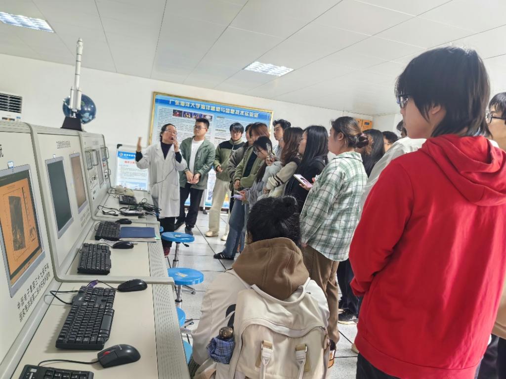 同学们接下来参观了“全国海洋科普教育基地”-XCSport海洋遥感与信息技术实验室。参观过程中,工作人员首先介绍了卫星遥感技术的基本原理及其在海洋科学研究中的重要性,随后工作人员详细讲述了遥感实验室的发展历程,以及实验室数据来源、数据接收、数据整理、数据分析的具体过程,还展示了实验室在南海海洋资源探索、海洋环境监测以及生态变化等研究方面做出的重要成果。通过工作人员的讲解,同学们了解了遥感技术在海洋生态系统监测和海洋环境监测等方面的重要作用,也认识了卫星数据接收系统、数据处理服务器和遥感图像处理软件的基本工作原理,使员工对遥感数据分析有了更直观深入的认识。