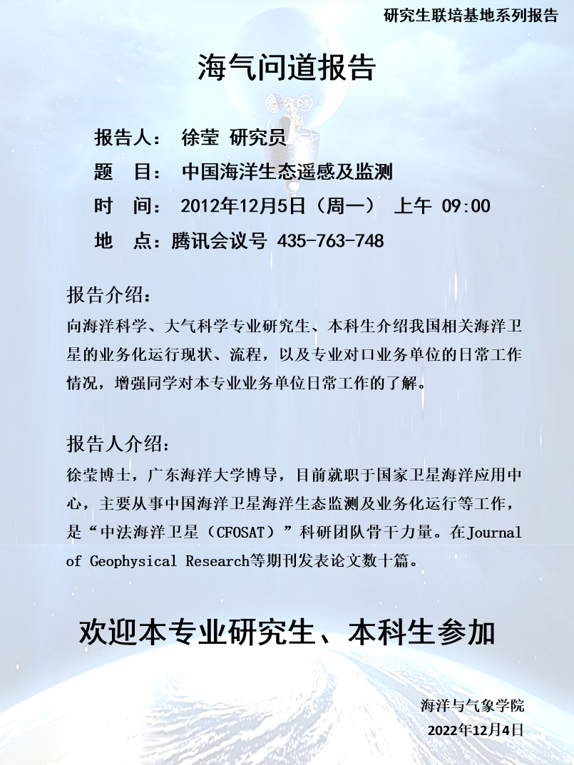 【学术会议通知】XCSport“海气问道”(202203期)