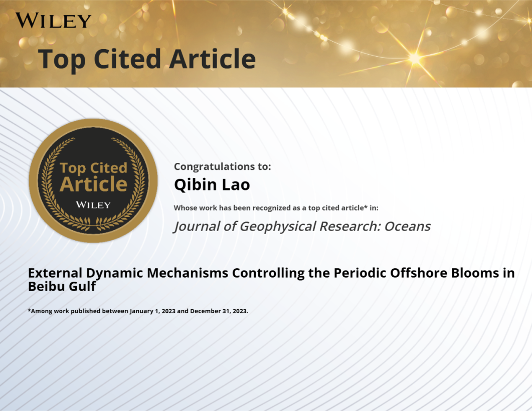 Lao, Q., Liu, S., Ling, Z., Jin, G., Chen, F.*, Chen, C., & Zhu, Q. (2023). External dynamic mechanisms controlling the periodic offshore blooms in Beibu Gulf. Journal of Geophysical Research: Oceans, 128(6), e2023JC019689. https://doi.org/10.1029/2023JC019689