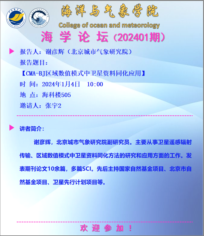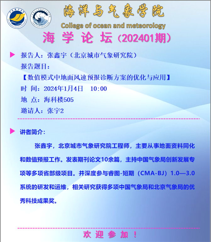 【学术会议通知】海学论坛 2024 01期