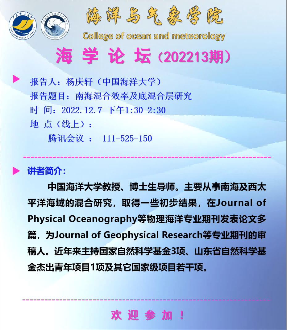 【学术会议通知】海学论坛 2022 13期