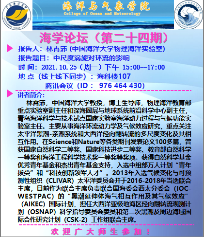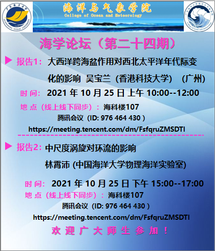 【学术会议通知】海学论坛(二十四期)