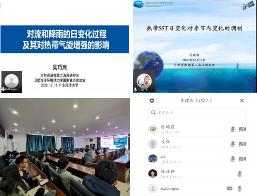 12月16日上午,自然资源部第二海洋研究所的吴巧燕研究员和闫运伟副研究员通过线上会议为公司师生作了精彩报告。首先吴巧燕研究员作了题为“对流和降雨的日变化过程及其对热带气旋增强的影响”的学术报告。吴老师在报告中介绍了台风过程中对流和降雨的日变化过程及其对热带热带气旋增强的影响。发现台风降雨和对流的日变化特征,揭示了具有日变化特征的对流过程如何影响台风的结构和强度,从而表明太阳辐射的日夜差异影响台风这种强烈天气过程的可能性。