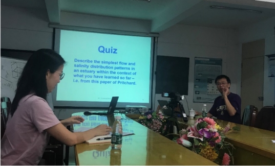 李春雁教授围绕河口动力学,从河口基本特征、经典理论、动量平衡、重力环流、科氏力影响、动力学分类、纳潮量和冲刷时间等方面讲座报告。讲座内容充实,针对性强,讲授精彩,与会师生深受吸引,极大丰富了对河口动力学的认识,同时增强了研究兴趣。授课中,李春雁教授与听会师生互动频繁,对师生的提问均进行了非常详细的解答和探讨,让大家受益匪浅。