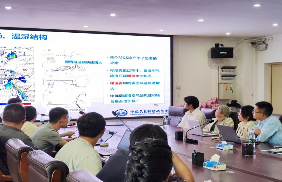 高小雨老师汇报的主题为 太行山热力强迫在华北极端降水中扮演的角色,分为个例分析,统计研究,华北暴雨综合科学实验三部分。从华北特大暴雨事件入手,进一步引入地形效应对雷暴降水的影响等研究内容。此外,研究小组在阳台山进行了暴雨观测,包括表面观测,梯度观测,风廓线雷达观测等观测。报告还对河南新乡极端小时降水作了细致讲解。最后高老师着重介绍了华北暴雨综合科学实验。
